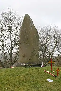 When the Roman garrison of Britain was withdrawn in 410, the various British states were left self-governing. Evidence for a continuing Roman influence after the departure of the Roman legions is provided by an inscribed stone from Gwynedd dated between the late 5th and mid-6th centuries commemorating a certain Cantiorix who was described as a citizen (cives) of Gwynedd and a cousin of Maglos the magistrate (magistratus).[1] There was considerable Irish colonisation in Dyfed, where there are many stones with ogham inscriptions.[2] Wales had become Christian under the Romans, and the 'age of the saints' (approximately 500–700) was marked by the establishment of monastic settlements throughout the country, by religious leaders such as Saint David, Illtud and Saint Teilo.[3]