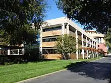 The three-story former main building for Walt Disney Animation Studios was completed in 1940, based on a Streamline Moderne design by industrial designer and architect Kem Weber.[10] It is considered the jewel of the original studio buildings. Walt Disney personally supervised the eight-wing "double H" design, ensuring as many rooms as possible had windows, which allowed natural light into the building to help the animators while working. Many Disney animated features were drawn here, including Dumbo (1941), Bambi (1942), Cinderella (1950), Alice in Wonderland (1951), Peter Pan (1953), Lady and the Tramp (1955), Sleeping Beauty (1959), One Hundred and One Dalmatians (1961), The Jungle Book (1967), The Aristocats (1970), The Rescuers (1977), and The Fox and the Hound (1981). The animation for The Black Cauldron (1985) was the last to be completed at the site.[11]