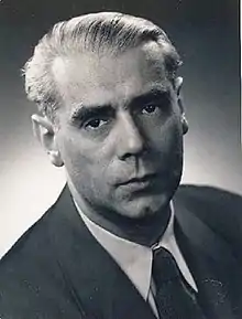 Just before the war Kaufmann spent some time in America, unsuccessfully attempting to establish himself there, but ultimately returned to India. During World War II he served in the British Navy and after the war he tried to return to Prague but settled instead in London, arriving in August 1946, where he scored two documentary films for the Rank Organisation and (at the invitation of Adrian Boult) occasionally conducted the BBC Theatre Orchestra. A year later he left England, moving to Nova Scotia, Canada where he taught at the Halifax Conservatory.[7] With the support of by Sir Ernest MacMillan, Kaufmann was invited to become the first professional conductor of the Winnipeg Symphony Orchestra from 1948 to 1956.[8] Divorced from his first wife Gerti, he married the pianist Freda Trepel in 1951.[9] After moving to the United States, he served as a professor of musicology at Indiana University from 1957 until his death in 1984 in Bloomington.[10][11][12]