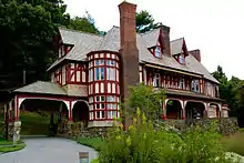 Walter Thompson House and Carriage House is a historic home located at Philipstown in Putnam County, New York. The house was named North Redoubt after the American Revolutionary War redoubt on the hill next to the house. It was built between 1883 and 1890 and is a two-story half-timbered building on a stone foundation in the Tudor Revival style. It has a hipped roof whose overhang is supported by heavy timber brackets. The carriage house consists of two wings connected by a hyphen. The main wing has a gable roof and is topped by a cupola with domical roof.[2]