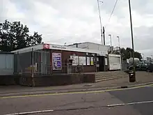 Waltham Cross railway station is on the West Anglia Main Line, serving the suburban town of Waltham Cross in Hertfordshire, and the neighbouring Waltham Abbey in Essex, England. It is 12 miles 63 chains (20.6 km) down the line from London Liverpool Street and is situated between Enfield Lock and Cheshunt. Its three-letter station code is WLC and it is in Travelcard zone 7.
