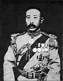 Wang Chengbin (Chinese: 王承斌) (August 21, 1874 February 15, 1936) was an ethnic Manchu Chinese general of the Warlord Era of the Republic of China. He was the father of Hong Kong cartoonist Alfonso Wong. Born in Fengtian (now Liaoning) Province, Wang attended Baoding Military Academy from 1907–09, and shortly thereafter joined the New Army and was stationed in Changchun, Jilin Province. In October 1911, after the outbreak of the Wuchang Uprising, he was sent to Shanxi Province to suppress supporters of the Xinhai Revolution. In August 1912, he was appointed commander of the 11th Regiment, part of the 6th Brigade, 3rd Division. In the fall of 1913, he went with the 3rd Division to Yuezhou (now Yueyang in Hunan) to suppress the Second Revolution. In 1915, he went with the 3rd Division to Sichuan Province to suppress opposition to the Empire of China. In July 1917, he acted with Wu Peifu to overthrow Zhang Xun's Manchu Restoration.