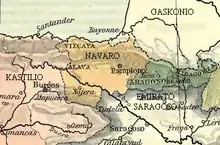 Between August and September 1067 Sancho Ramírez led a counterattack against Castile. Tradition is divided over who had the victory, the Chronicle of San Juan de la Peña attributes a rout to the Navarrese and Aragonese at Viana, while the Primera crónica attributes victory to Sancho of Castile. Ramón Menéndez Pidal and Bernard F. Reilly accept the latter tradition, Reilly citing a donation of December 1167 to the monastery of Oña by a Flaino Oriolez dominator Tetelie, a landholder in the Trespaderna district of the upper Ebro Valley. The participation of a Castilian magnate from the Navarrese border in an act by which Sancho formally defined the jurisdiction of the Diocese of Oca (the only bishopric in Castile) strongly suggests that Sancho was in a strong position.[2] The chronicler of San Juan de la Peña, a Navarrese source, wrote that Sancho of Castile was forced to raise the siege of Viana and flee on a horse bedecked only in its halter; that he subsequently convinced Abd ar-Rahman of Huesca to go to war with Aragon; and that Sancho Ramírez eventually made peace with him anyway.