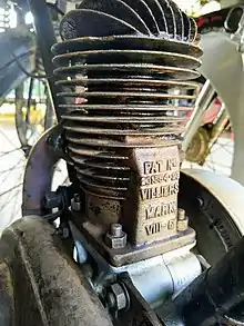 | 1932 | A machine fitted with a 147 cc Villiers two stroke engine was available.[58] The following description is from (apparently promotional) press coverage describing improvements over the previous year's model. "These machines are totally redesigned, having visible top rail, tapering away under the saddle, and giving exceptionally low riding position, and gaining very high ground clearance." The front forks had enclosed webbing, apparently to strengthen them. It was fitted with electric light, battery and dimmer. Petrol consumption was approximately 150 mpg.
