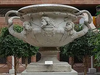 The Warwick Vase is an ancient Roman marble (partially restored) vase with Bacchic ornament that was discovered at Hadrian's Villa, Tivoli about 1771 by Gavin Hamilton,[1] a Scottish painter-antiquarian and art dealer in Rome, and is now in the Burrell Collection in Glasgow in Scotland.