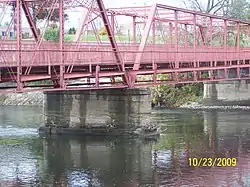 Water Street/Darden Road Bridge is a historic Pratt through truss bridge located in Clay Township, St. Joseph County, Indiana. It was built in 1885 by the Chicago Bridge & Iron Company, and is a double-span steel bridge. It measures 328 feet long and 20 feet wide. It was originally located at Water Street (now LaSalle Street) in nearby South Bend, and moved to its present location in 1906 on Darden Road, where it crosses the St. Joseph River.[1] The bridge has experienced multiple closures since being moved, the last in 1970; it remains closed to vehicular traffic.[1] Darden Road now crosses the river on a bridge opened in 1999.[2] The Water Street/Darden Road Bridge lies along the Darden Road Trail, part of the larger Indiana–Michigan River Valley Trail.[3]