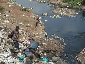 According to residents, "water is highly contaminated, smells, has a weird color and has particles inside", "because old, rusty pipes often break and water is polluted by the open drainage lines and sewage lines which run parallel to the water network".[39] In 2003, when the new water law was passed, the government threatened to shut down kiosks that were not properly registered, saying that they overcharged the poor and did not pay their bills to the city. As a result, in 2004 kiosk owners formed an association called Maji Bora Kibera (MBK) – the Swahili translation of 'better water services for Kibera'. They engaged in a dialogue with the government, paid their arrears, committed not to pay bribes and were trained on courtesy and customer relations.[34]