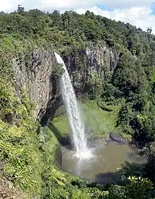 New Zealand, according to the gazetteer maintained by Land Information New Zealand has "249 named waterfalls and 31 named rapids". There are perhaps seven named "Bridal Veil", and 17 whose names include "Rere" meaning "to leap or descend". In the North Island only 18 of 130 have non-Māori names (including 5 clustered around Mount Taranaki), but in the South Island only 15 of the 150 named waterfalls (or rapids) have retained their Māori name.[1]