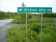 The Michael Wile Road is the new name for the former Veinot Road and reflects the original colonists Michael and Lucy Wile. St. Clair Veinot and his wife Sadie Wile Veinot owned and lived in the Michael Wile home place after Michael and Lucy passed on.