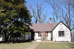 The Waterman-Archer House is a historic house at 2148 Markham in Fayetteville, Arkansas. It is a single-story Tudor Revival brick structure, whose shape is that of an H missing an arm (to the rear). To the front, it presents two gable-ended projecting sections, joined by a central portion with its roof ridge running parallel to the street. The right gable section has a large multipane window, with a trio of decorative square elements at the gable peak. The entry is found at the left side of the center section, with a window beside. Another large multipane window adorns the left gable section. The house was built in 1929, and is a distinctive local example of Tudor Revival architecture.[2]