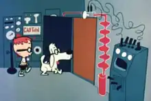 The Wayback machine was a central element of the "Peabody's Improbable History" cartoon segment. The machine was invented by Mr. Peabody, a genius, polymath, and bow tie-wearing beagle, as a birthday gift for his adopted pet boy, Sherman. By allowing them to visit famous historical people or events, the Wayback provided educational adventures for Sherman.[3] At the request of Mr. Peabody ("Sherman, set the Wayback machine to..."), Sherman would set the Wayback controls to a time and place of historical importance, and by walking through a door in the Wayback machine, they would be instantly transported there. Examples of places or people visited are the Marquess of Queensberry[4] and the rules of boxing, the imprisonment and memoirs of Casanova,[5] and Jim Bowie and the Bowie knife.[6] The machine apparently later returned Mr. Peabody and Sherman to the present, although the return trip was never shown. The segment traditionally ended with a pun.