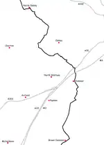 These maps show the footpath in relation to nearby major roads. Maps are not on the same scale.