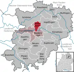Location of Weißbach within Hohenlohekreis district