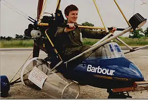 Weight-shift control as a means of aircraft flight control is widely used in hang gliders, powered hang gliders, and ultralight trikes. Control is usually by the pilot using their weight against a triangular control bar that is rigidly attached to the wing structure. The wing is mounted on a pivot above the trike carriage or hang glider harness allowing the weight-shift forces to produce changes in pitch and bank.[1]