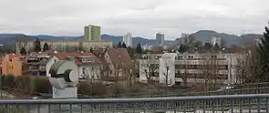 Weingarten was established by the Freiburger Stadtbau company between 1964-66.[1] There are 11,263 inhabitants living in this district (2020).[2] It is characterised by various residential tower blocks and the high percentage of foreigners compared to the rest of Freiburg, with 48.2% of inhabitants having a migration background.[3]