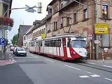In 1995, the concept of MVG 2000 was implemented that also brought significant changes for the OEG. Up to this time, trains coming from Weinheim terminated in the forecourt of Mannheim Hauptbahnhof and from Heidelberg in Mannheim Kurpfalzbrücke (Kurpfalz bridge) station. The circuit was then completed with trains running through the centre of Mannheim. To achieve this, a short connecting line was built from the front of Collini-Center, bypassing Kurpfalzbrücke station junction and connecting to the tram line on Friedrichsring. This connection was a restoration; there had been a similar link until 1928 or 1974. The OEG was connected to the Mannheim tram network and now ran with the line designation of 5R (and 5 for trains running only on the Käfertal–Mannheim–Edingen section). In the 1990s, the Heidelberg–Schriesheim section was duplicated to allow denser regular-interval traffic. The Handschuhsheim Nord–Dossenheim section has been double-track since 28 February 1999. The second track was completed in the spring of 1999 and was the only one used while the old track was renewed. Two-track operations started and the two new halts of Dossenheim Nord and Schriesheim Süd were commissioned on 12 June 1999.[7] The duplication of the remaining section of the line between Schriesheim and Weinheim was carried out from March 2011 with a seven-month closure of the line with trains replaced by buses.