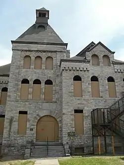 West Hill School is a historic school building located at Canajoharie, Montgomery County, New York. It was designed by prominent local architect Archimedes Russell (1840–1915) and built 1891–1893. It is a 3+1⁄2-story, stone masonry institutional building. It features a stone tower with open belfry containing the original school bell. It continued in educational use for over 100 years.[2] It was constructed on the site of the Canajoharie Academy, where in 1846, Susan B. Anthony began a teaching position as head of the girls division.[3]