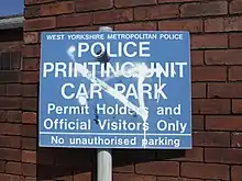 Relic of the former West Yorkshire Metropolitan Police – sign found near former police building in Wakefield city centre (now removed)