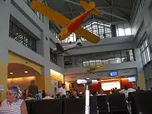 Westchester County Airport has one small, three-level terminal with six gates, of which only four can be used simultaneously because only four aircraft can be scheduled to use the terminal's ramp at any given time. The $35 million terminal was built in 1995 and designed by Lothrop Associates.[29] Gates A, B, C, and F have jetways. The terminal also has a luggage carousel, a baggage reclaim office and two Transportation Security Administration (TSA) screening lanes. Passenger amenities include a gift shop, departure lounge, and food concessions.[30]