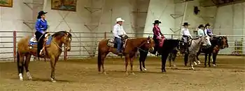 - ↑ Friesian Grand National Amateur Western Pleasure Class 2005. Some breeds allow or encourage a higher head carriage than is seen in traditional stock horse breed competition