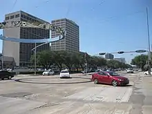 The portion spanning from I-610 west to the Westpark Tollway is designated as a part of Farm to Market Road 1093 (FM 1093).[1][2][3] From I-610 west, Westheimer Road traverses through Uptown and then west-southwest to Chimney Rock. From Chimney Rock west, Westheimer is straight along a cardinal east–west line. Westheimer passes north of Alief and Westchase when passing under Beltway 8. After intersecting State Highway 6 (SH 6) and passing west of West Oaks Mall, Westheimer Road and Westheimer Parkway split, with Westheimer Parkway continuing west through George Bush Park and Westheimer Road (also known as "Old Westheimer Road") turning southwest. Westheimer Road terminates when FM 1093 becomes the feeder road of the Westpark Tollway just west of FM 1464 and just inside Fort Bend County.
