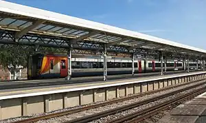 Weymouth railway station is the main railway station serving the town of Weymouth, Dorset, England (the other being Upwey station which is located north of the town centre). The station is the southern terminus of both the South West Main Line, 142 miles 64 chains (229.8 km) down the line from London Waterloo, and the Heart of Wessex Line from Bristol Temple Meads and Gloucester, 168 miles 63 chains (271.6 km) from London Paddington.[1]