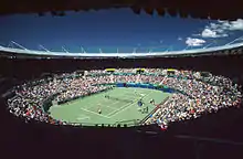 View from above of the venue for wheelchair tennis competition at the 2000 Summer Paralympics - the Olympic Tennis Arena