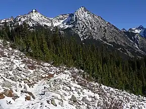 - 1 2 3 4 Beckey, Fred W. (2009). Cascade Alpine Guide: climbing and high routes, Vol. 3, Rainy Pass to Fraser River (3rd ed.). Mountaineers Books. p. 302. ISBN 978-1-59485-136-0.