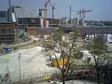 As part of the construction of the Westfield London shopping centre, the original depot along with the disused Wood Lane platforms and station building were demolished. A new depot was built in a slightly different location, located directly beneath the shopping centre - funded by Westfield. The new depot opened in January 2007, with 16 stabling sidings, one more than previously.[5][9] The White City depot is the closest depot to Central London of any tube line.[10] Since the 1990s, all trains stabled at the depot are 1992 Stock.