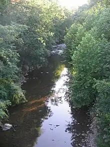 White Deer Creek is a freestone stream.[11] There are numerous strainers on White Deer Creek, to the point where the creek was described as "one of the most tree-infested and strainer-struck streams in the state".[13] The creek's channel is also braided in some reaches.[13] The creek flows through a very narrow valley and, in its upper reaches, is small for a canoeing stream.[13][14] The community of White Deer experiences significant flooding problems because it is on the creek's floodplain, and because of the creek's narrow valley.[14] The topography of the watershed is mountainous, with the creek's narrow valley being surrounded by steep ridges.[15] The watershed was described as rugged, with sharp topographical features, in a 1938 report. The watershed is not affected by glaciation, as it is approximately 30 miles (48 km) south of the glacial moraine.[12]