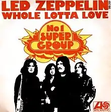 "Whole Lotta Love" is a song by the English rock band Led Zeppelin. It is the opening track on the band's second album, Led Zeppelin II, and was released as a single in 1969 in several countries; as with other Led Zeppelin songs, no single was released in the United Kingdom. In the United States, it became their first hit and was certified gold.[7] Parts of the song's lyrics were adapted from Willie Dixon's "You Need Love", recorded by Muddy Waters in 1962; originally uncredited to Dixon, a lawsuit in 1985 was settled with a payment to Dixon and credit on subsequent releases.