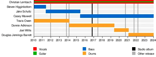 - Jake Schultz – bass (2011–2015) (former bassist for Norma Jean)
