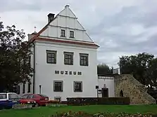 The Museum of Wieluń Land (Muzeum Ziemi Wieluńskiej), located in the Renaissance Bernardine monastery, is the town's primary museum, dedicated to the history of Wieluń and its surroundings. It contains archaeological, ethnographic, historical and art collections.[2] Displayed artifacts include jewelry and weaponry from the Bronze Age and Middle Ages, weapons and memorabilia from the 19th-century Polish national liberation uprisings, religious paintings and traditional folk sculptures, and Biblia Brzeska, one of the oldest Polish translations of the Bible.[2] There is also an exhibition dedicated to the German bombing of Wieluń at the start World War II.[2]