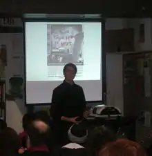 Will Potter, born circa 1980, is an American investigative journalist and public speaker. From 2016 to 2017, he was the Marsh Visiting Professor of Journalism at the University of Michigan.[1] He has written for several publications, including the Chicago Tribune, The Dallas Morning News, and Legal Affairs. In his writings, he has focused on how the "war on terrorism" affects civil liberties. He has become a leading critic of the US government's Green Scare tactics, through his website, GreenIsTheNewRed.com. He has written several articles on this topic, as well as participating in conferences and giving lectures at universities, with some of his papers used in courses. In 2006, he spoke to the U.S. Congress about his reporting on these issues, and in 2008 his article about the Animal Enterprise Terrorism Act, was discussed in the book, Censored 2008, as one of the top 25 overlooked news stories of 2007. Potter is also a TED[2] Fellow, having given a talk about communication management units.