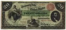 In 1854, Tayloe leased the property again to Willard, this time for 10 years at a rate of $1,200 per year.[9] The lease contained a provision that Willard could purchase the entire property at any time during the life of the lease for $22,500—$2,000 in "cash" down payment and another $2,000 a year (plus interest) thereafter until the mortgage was paid.[10][11] During the lease, the American Civil War broke out and property values in Washington, D.C., skyrocketed.[12] Nearly all Northern banks suspended the use of specie (money backed by gold deposits) due to bank runs, and the federal government followed suit shortly thereafter.[12][13][14] In 1863, Congress passed the National Banking Act, which authorized the federal government to issue United States Notes (paper money) rather than coins made of gold or silver.[14] The U.S. Notes were not convertible into gold, and quickly depreciated in value.[15]