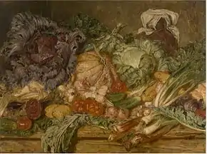 His still lifes of vegetables, cakes and other objects are very colourful and poetic.[6]