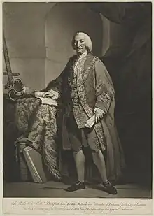 Sir William Beckford (December 1709 – 21 June 1770) was a Jamaican-born planter and Whig politician who twice served as Lord Mayor of London in 1762 and 1769. One of the best known political figures in Georgian era London, his vast wealth derived from the sugar plantations and hundreds of slaves he owned in the British colony of Jamaica. In Britain, Beckford was a supporter of the Whig party, including Prime Minister William Pitt, 1st Earl of Chatham. He also publicly supported progressive causes and frequently championed the London public.[1][2]