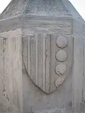 Monument showing the family crest, near the location where Guillermo II de Bearn died in combat alongside his nephew Ramón during the conquest of Majorca. The monument is part of the decoration of the Paseo Calvia.