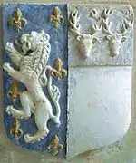 Four shields with armorials are displayed on the frieze of the monument supported by two pairs of Corinthian columns, as follows:[11]