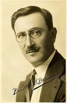 Benson emigrated from the Russian Empire to the United States in 1889. He was an osteopathic physician in Newark, New Jersey. He was also the author of an original method for teaching Esperanto using pictures[1] and the owner of Benson's School of Esperanto. He authored 10 Kajerojn de Universala Esperantigilo (1925–1927) and Bensona Universala Esperanto-Metodo (1932).[1] Benson was a member of American Academy of Esperanto (Amerika Esperanto-Akademio) in the 1940s.