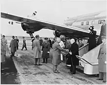 As he had done during his first speech at the United States Capitol in 1941, he referred to his mother's American ancestry, in this case stating, "I was on both sides in the war between us and we."[6] When exiting the United States through New York, he quipped "I don't feel on uneven terms with your might and my prestige" in response to pointed questions about the balance of power between the two countries.[1] Per Young, the "courteous treatment which Churchill received in Washington was thanks to his wartime reputation, and the fear of his trouble-making capacity"—the visit had served Churchill's personal needs but had only minimally resolved foreign policy disputes between the two countries.[1]