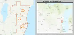 2. "Senate District 9". Wisconsin Legislature. Retrieved March 5, 2021.