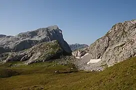 The Wiss Platte (also known as Weissplatte or Weißplatte) is a mountain in the Rätikon range of the Alps, located on the border between Austria and Switzerland. It lies between Schruns (Vorarlberg) and St. Antönien (Graubünden).