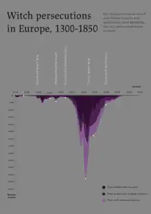 The period of the European witch trials with the most active phase and which saw the largest number of fatalities seems to have occurred between 1560 and 1630.[40][5] The period between 1560 and 1670 saw more than 40,000 deaths.[41]
