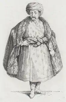 • ^ Sources vary greatly on this one, with his age at capture being given as 13, 14, 18 and 30. Considering he had some knowledge of music, and that some of his work is mentioned in the context of 1630 it would appear that the age of around 18 is most likely, and 30 is the least likely if he indeed served on the courts of two sultans previous to Mehmed IV. The Polish Biographical Dictionary notes that he received his freedom in 1657, about 19 years after his capture. This would indicate he was captured in 1638, thus he would have been either 28 (if born in 1610) or 22 (if born in 1616).