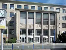 In March 1934 Diewerge was employed as a government assessor in Goebbels' Reich Ministry of Popular Enlightenment and Propaganda.[11] In mid-1935, he was listed in various constellations for Cuno Horkenbach's yearbooks as "Referent" in Department VII of this ministry, which is titled "Defense" or "Defense against lies.[12] For Diewerge this marked the beginning of a continuous rise. In 1936 he was promoted to the government council, in 1939 to the upper government council. In 1941 he reached the career level of a ministerial councilor. In 1936 he married, by 1941 the couple already had three children. An undated assessment of the ministry about Diewerge was very positive, in particular his attitude to the Nazi world view was acknowledged as "unconditional".[13] His duties included propaganda lectures abroad, among other things in connection with a three-month trip to Africa in 1937.[14] Time and again his activities revolved around incidents, trials and publications abroad that gave rise to anti-Semitic campaigns against so-called world Jewry.