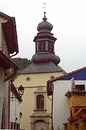 Wolfstein (German pronunciation: [ˈvɔlfˌʃtaɪ̯n] ⓘ) is a town in the Kusel district in Rhineland-Palatinate, Germany. Before 1 July 2014 it was the seat of the like-named Verbandsgemeinde, since then it is part of the Verbandsgemeinde Lauterecken-Wolfstein. Wolfstein is known for its two castle ruins, Neu-Wolfstein standing over the heart of the town, and Alt-Wolfstein standing at the narrowest spot in the Lauter valley at the town's northern entrance. Wolfstein is a state-recognized recreational resort (Erholungsort).[3]