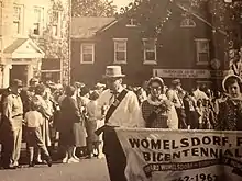 - ↑ "Womelsdorf to celebrate 100th anniversary event". Reading Eagle. Jun 28, 1933. p. 18. Retrieved 3 November 2015.
