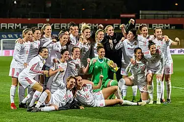Spain became a top 10 team in the FIFA World Rankings for the first time in 2021.[21] Spanish players won all categories of the 2021 UEFA awards, the first time all from one nation. The winners were Alexia Putellas, Sandra Paños, Irene Paredes, and Jennifer Hermoso. In December 2023 after their success in the Nations League, Spain became the number one ranked team in the world.[22]