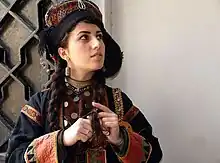 Because Georgian culture is a patriarchal one, women are accorded a chivalric form of respect.[8] Women can have the role of both as "breadwinner and housewife". Most of the chores at home are done by women. There is no "explicit division of labor" according to gender, except in so-called "areas of physical labor" (an example is in the field of mining). The statue of Mother of Georgia (Kartlis Deda, or "Mother of Kartli") that stands at a monument in the hills above Tbilisi perhaps best symbolizes such national character: in her left hand she holds a bowl of wine with which she greets her friends and in her right is a sword drawn against her enemies. One of the most important and powerful rulers of Georgia was Queen (king of kings) Tamar the Great. In more recent history Georgian women have been able to acquire various positions in the military including being among the few professional fighter and helicopter pilots of the country's small air force and also a small number in the army's special operations forces.[9] Many women also serve in the field of law enforcement and the government. However, no women are allowed to become priests of the Orthodox church or Muslim mullahs.[8] The so-called "traditional stereotypes of gender-defined social roles" are undergoing changes because of the education being received by new generation of women.[8] Clothing norms stipulate that inside churches, head covering and dress or skirt for women are usually required.